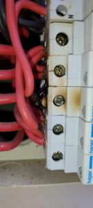 When a connection becomes loose, tiny gaps can form between the conductors. Electricity may “jump” across these gaps, creating arcs. These arcs produce heat and can sometimes make sparks which can turn into a fire within a switchboard.